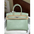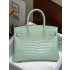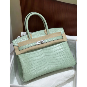 플래티넘급 30cm 사이즈의 민트그린 실버 버클 핸드백입니다. 수입 매트 나일 크로커다일 가죽을 사용하여 최고급 수작업으로 제작되었습니다. 전문 매장과 동일한 퀄리티로 현품 출고 가능하며, 전체 수공예 제작 방식을 적용한 프리미엄 제품입니다.