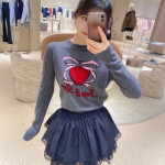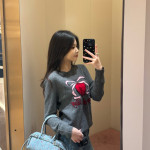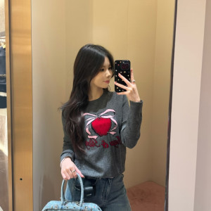 하트 리본 프린트 그레이 니트