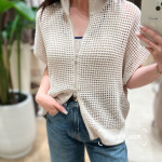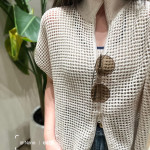 베이지 메쉬 반팔 가디건 > 의류/패션