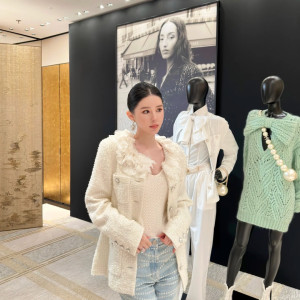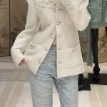 화이트 트위드 진주버튼 재킷