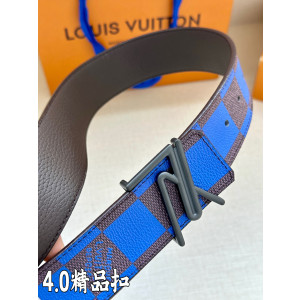 4.0cm 폭의 LV Initiales 양면 벨트로 루이비통 2024 봄/여름 남성 컬렉션에서 선보인 제품입니다. 선명한 Damier Pop 캔버스와 세련된 소가죽으로 양면을 구성하여 다양한 스타일링이 가능합니다. LV 레터 버클과 Louis Vuitton Marque Déposée 로고가 포인트로 들어가 있으며, Damier Pop 코팅 캔버스와 소가죽 소재에 메탈 장식이 적용되어 고급스러움을 더했습니다. 스페인에서 제조된 프리미엄 제품입니다.