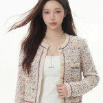 샤넬풍 양모 혼방 스팽글 니트 가디건
