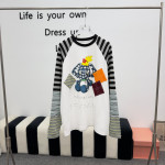 스트라이프 소매 캐릭터 긴팔 티셔츠